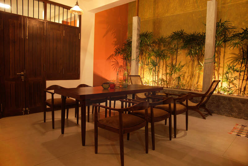 The house features a long veranda and an attractive courtyard area, which create a natural ventilation system and a cool environment to the total area, complemented by the greenery. The interior design mainly comprises colonial and contemporary wooden furniture, providing a perfect blend of tradition and modernity. The furniture pieces include little dark Burma teak color accents that add depth and character to the space.