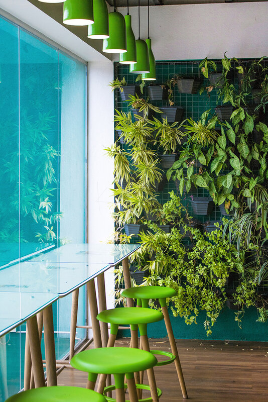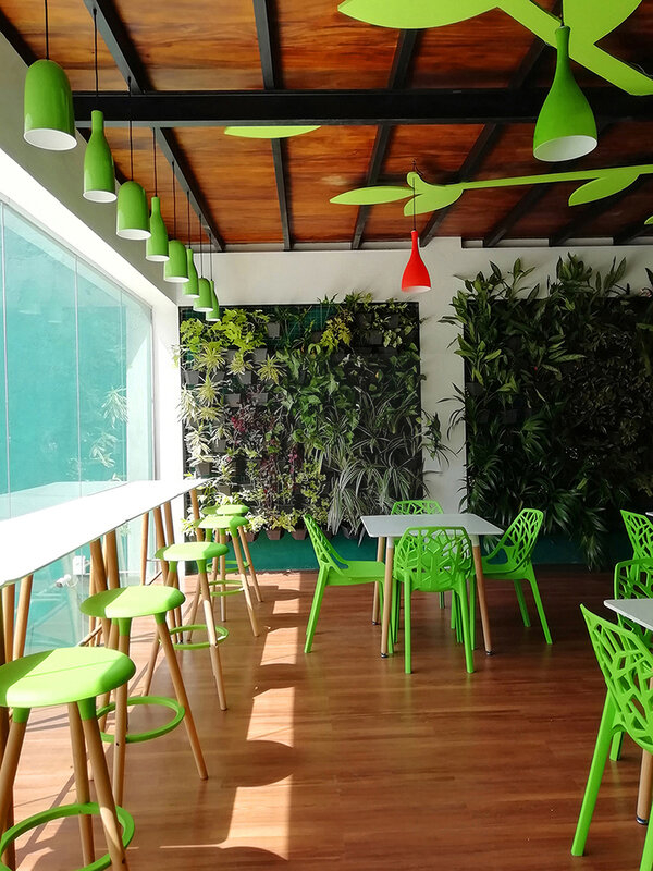OLEAF is a restaurant and café located in the bustling urban environment of Maharagama, Sri Lanka, providing a relaxing and peaceful environment for friends and family gatherings. The interior design is centered around a green theme, which brings the customers closer to nature, creating a calm and soothing atmosphere with its earthy and white color palette. The natural vertically planted walls further enhance this atmosphere, providing a refreshing experience for customers who are looking for a healthy and relaxing place to dine.