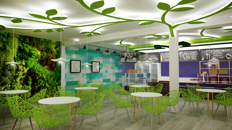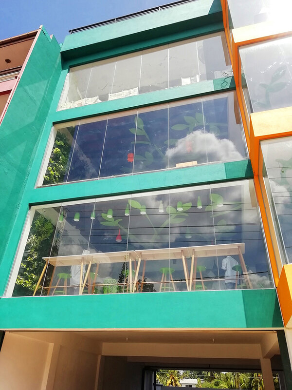 The restaurant and bakery follow an open kitchen concept, allowing customers to observe the process of food preparation and ensuring the quality of the products. The owner, Mr. Sandun Jayathilake, wanted to provide a unique experience for his customers by showcasing the quality of their service and the natural green concept throughout the establishment, aligning with their corporate color combinations.