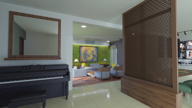 The house had a contemporary modern design concept, but the client wanted to update the outdated interior that had been arranged many years ago. By utilizing new spaces and replacing old elements, the interior was transformed into a more elegant space. Some existing furniture items were kept, with a few modifications made at the client's request. The overall atmosphere was transformed into a modern luxury theme, incorporating fabulous fabric materials, textures, and furniture items.