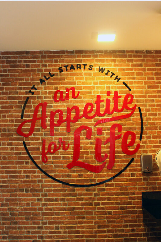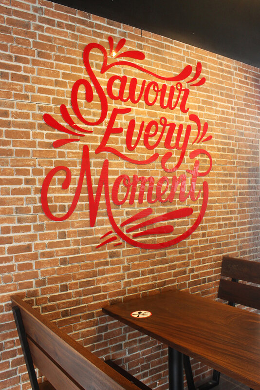 To maximize the given space, we opted for an open space concept while ensuring functionality. Before designing the space, we carefully examined the brand guidelines of KFC and gained an understanding of the restaurant's operations. We planned the lighting, space, and graphics to complement the overall theme, and utilized asymmetry to balance the various elements throughout the space.