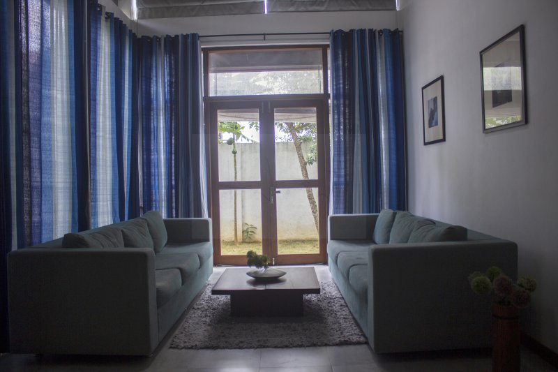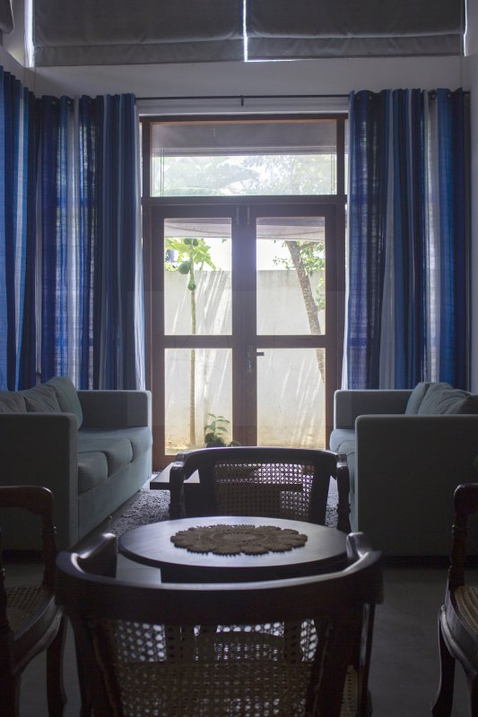 Kalota recently completed the design and fabrication of a contemporary minimalistic house that overlooks a picturesque paddy field in Kurunegala. The client, Mr. Chinthaka Rathnayake, desired a peaceful environment with a blue and gray color scheme, comfortable furniture, and traditional furniture elements.